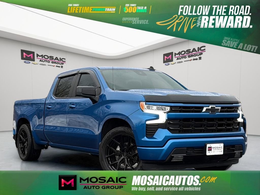 Mosaic Auto Group: One Name. One Location. One Goal. Bring trust in car buying and passion into service.This 2024 Chevrolet Silverado 1500 RST is a rugged and capable truck that offers a winning combination of power, technology, and style. Packed with a host of premium features, this Silverado is ready to take on any task you throw its way.- Bluetooth Hands-Free Phone and Audio- Apple CarPlay & Google Android Auto- Dual-Climate Control- Automatic Headlights- Keyless Access w/Pushbutton Start- Remote Start System- Rear View Camera- Heated Front Seats- Heated Steering Wheel- Accident-Free- Forward Collision Alert- Lane Keep Assist w/ Lane Departure Warning- Automatic Emergency Braking- Front Pedestrian Braking- Following Distance Indicator- Power Driver SeatUnder the hood, this Silverado 1500 RST is equipped with a powerful EcoTec3 5.3L V8 engine paired with a smooth-shifting 10-speed automatic transmission and 4-wheel drive. With 355 horsepower and 383 lb-ft of torque, you'll have the power to tow, haul, and conquer any terrain with confidence.The exterior of this Silverado boasts a bold and rugged design, featuring 20-inch high-gloss black painted aluminum wheels, black assist steps, and a Chevytec spray-on bedliner for added protection. The Glacier Blue Metallic paint finish gives this truck a premium and sophisticated appearance.Inside, the cabin is packed with premium amenities, including a 12.3-inch multicolor reconfigurable digital display, dual-zone automatic climate control, a heated steering wheel, and a 10-way power driver's seat with lumbar support. The Bose premium audio system and wireless charging pad ensure you stay connected and entertained on the go.Safety is a top priority, with features like Forward Collision Alert, Lane Keep Assist with Lane Departure Warning, Automatic Emergency Braking, and Front Pedestrian Braking to help keep you and your passengers secure.Whether you're tackling tough jobs or embarking on outdoor adventures, this 2024 Chevrolet Silverado 1500 RST is the perfect companion. Experience the power, technology, and versatility that this exceptional truck has to offer.Drive a little, SAVE a lot with Mosaic Chevrolet Zumbrota. Your hometown team standing behind every mile. Backed by our FREE Lifetime Powertrain Warranty, ask your sales consultant today. Plus, enjoy a $500 Trade-In Bonus when you trade your current vehicle (see dealer for details).
