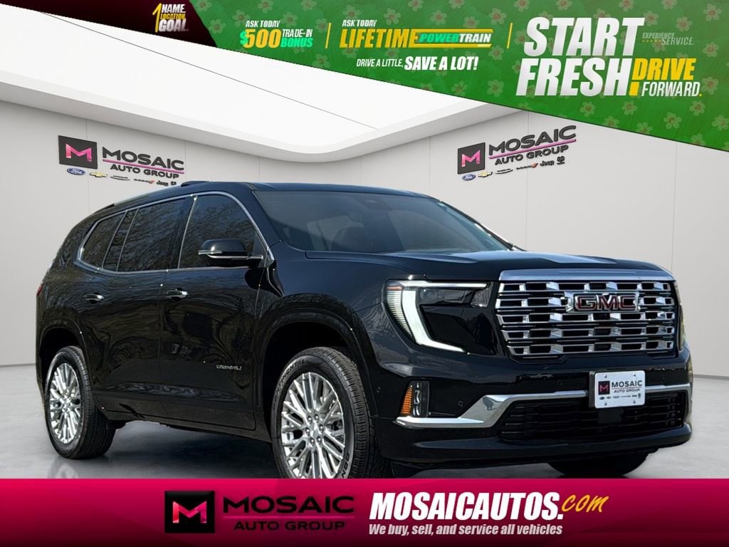 Mosaic Auto Group: One Name. One Location. One Goal. Bring trust in car buying and passion into service.This 2025 GMC Acadia Denali is a premium SUV that offers a remarkable blend of style, capability, and advanced technology. Boasting a striking Black exterior and a host of premium features, this Acadia Denali is the perfect choice for those seeking a versatile and well-equipped vehicle.- Apple CarPlay & Google Android Auto- Automatic Emergency Braking- Automatic Headlights- Bluetooth Hands-Free Phone and Audio- Dual-Climate Control- Following Distance Indicator- Forward Collision Alert- Front Pedestrian Braking- Heated Steering Wheel- Heated/Cooled Front Seats- Keyless Access w/Pushbutton Start- Lane Keep Assist w/ Lane Departure Warning- Navigation/Nav/GPS- Power Driver Seat- Power Liftgate- Rear Cross Traffic Alert- Rear Park Assist- Rear View Camera- Remote Start SystemPowered by a 2.5L DOHC engine and equipped with an 8-Speed Automatic transmission and All-Wheel Drive, this Acadia Denali delivers a smooth and confident driving experience. With an impressive EPA-estimated 19 MPG in the city and 24 MPG on the highway, you'll enjoy excellent fuel efficiency for your daily commute or weekend adventures.The Acadia Denali's spacious and well-appointed interior is designed to keep you and your passengers comfortable and connected. The Bose Premium 12-Speaker System with Sub-Woofer provides an immersive audio experience, while the 15 Diagonal Premium GMC Infotainment System with Navigation keeps you informed and entertained on the road.Safety is also a top priority, with features like Automatic Emergency Braking, Forward Collision Alert, and Rear Cross Traffic Alert providing added peace of mind. The Memory Package ensures that your preferred settings are always at the ready, and the Power Liftgate makes loading and unloading a breeze.Whether you're transporting the family, embarking on a road trip, or simply seeking a premium SUV that can handle your daily needs, this 2025 GMC Acadia Denali is an exceptional choice. Experience the difference for yourself and schedule a test drive today.Drive a little, SAVE a lot with Mosaic Chevrolet Zumbrota. Your hometown team standing behind every mile. Backed by our FREE Lifetime Powertrain Warranty, ask your sales consultant today. Plus, enjoy a $500 Trade-In Bonus when you trade your current vehicle (see dealer for details).